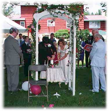 Here's Evelyn struggling with my wife's bouquet, which weighed more