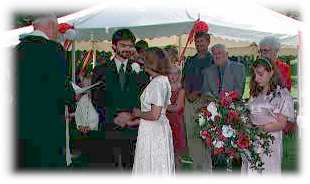 ![]() It's difficult not to look like an idiot at one of these things. Evelyn is about to be toppled by the "redwood forest" bouquet, and behind us is either my Uncle Bill, or Jerry Van Dyke (unfortunately, you can't see him very well, so you're just gonna have to take me word for it). |
