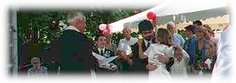 ![]() It's difficult not to look like an idiot at one of these things. Evelyn is about to be toppled by the "redwood forest" bouquet, and behind us is either my Uncle Bill, or Jerry Van Dyke (unfortunately, you can't see him very well, so you're just gonna have to take me word for it). |
